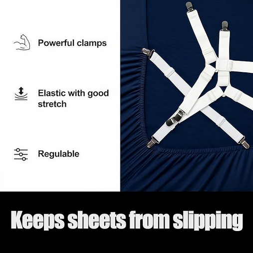 Bed Sheet Holders 1 Pack, Adjustable Elastic Fasteners with Metal Clips, Keep Fitted Sheets Firm and Tight on Mattress