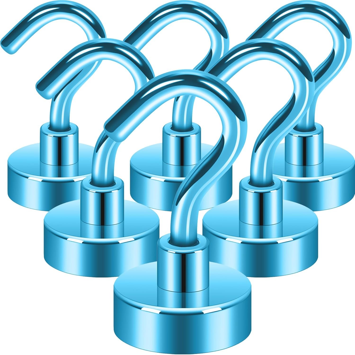 Click to see full view 2+ 6 VIDEOS Neosmuk Magnetic Hooks,30lb+ Heavy Duty Earth Magnets with Hook for Refrigerator, Extra Strong Cruise Hook for Hanging, Magnetic Hanger for Cabins, Grill (Blue, Pack of 6)